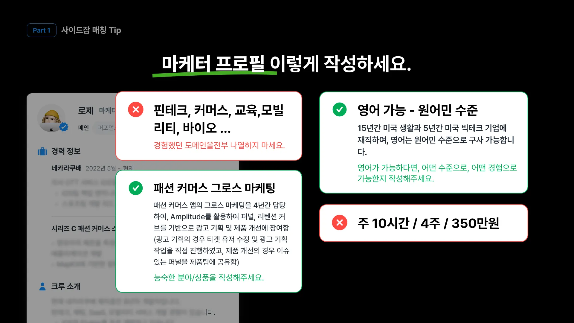 매칭 수락 시 : 기업이 원하는 경험을 강조 + 디테일!