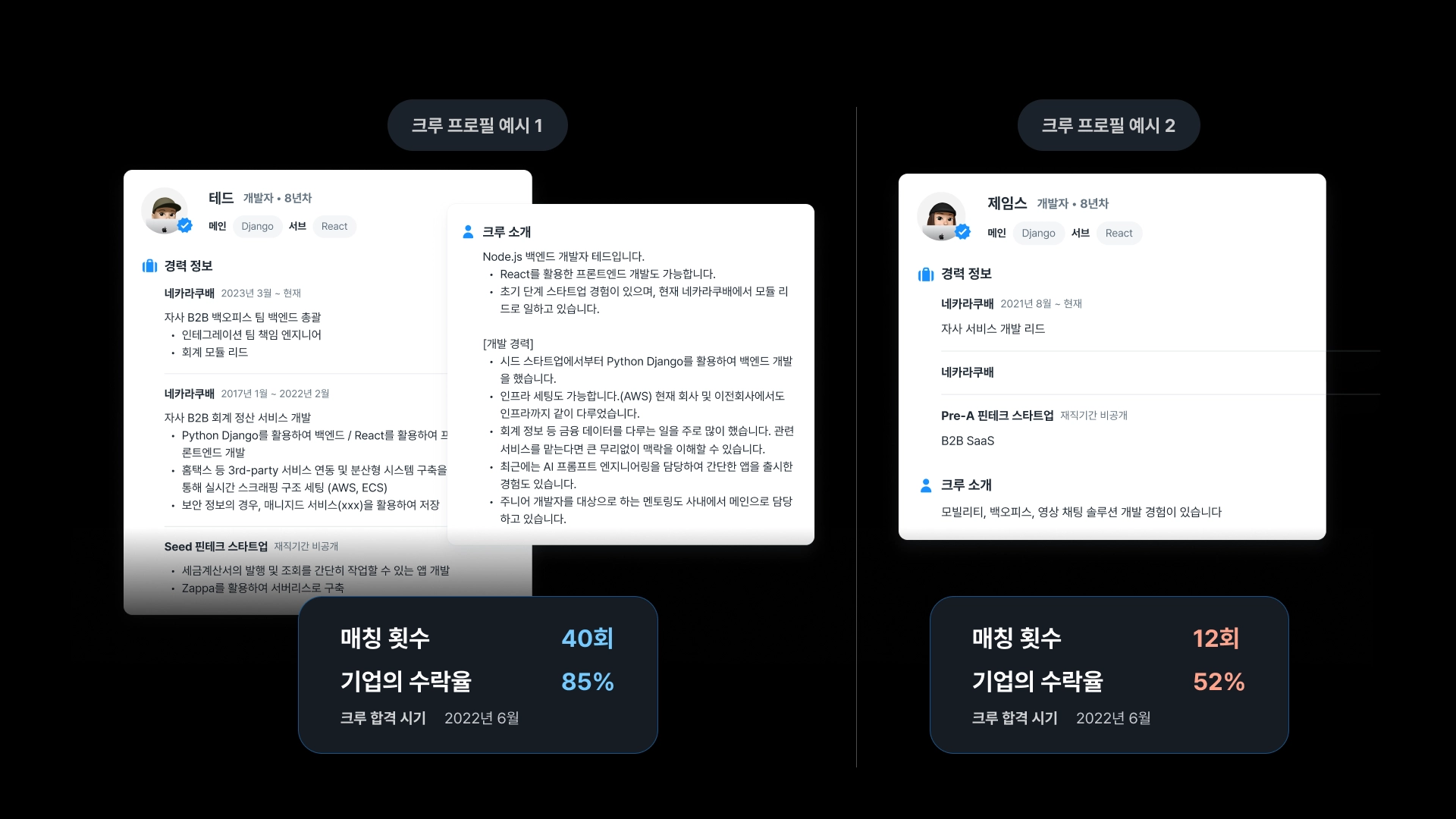DIO의 전담 매칭팀 및 알고리즘을 통해 기업에 적합한 크루를 선정할 때,