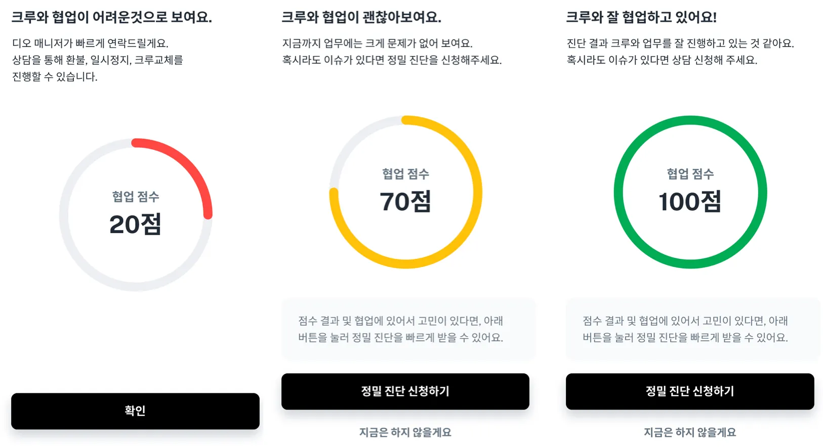 ํฌ๋ฃจ ๊ต์ฒด, ๊ณ์ฝ ์ผ์ ์ค์ง ๋ฑ ๋ ๋์ ๊ณ์ฝ์ ์ํ ์ค์ง์ ์ธ ์กฐ์น๋ฅผ ์ทจํ ์ ์์ต๋๋ค.