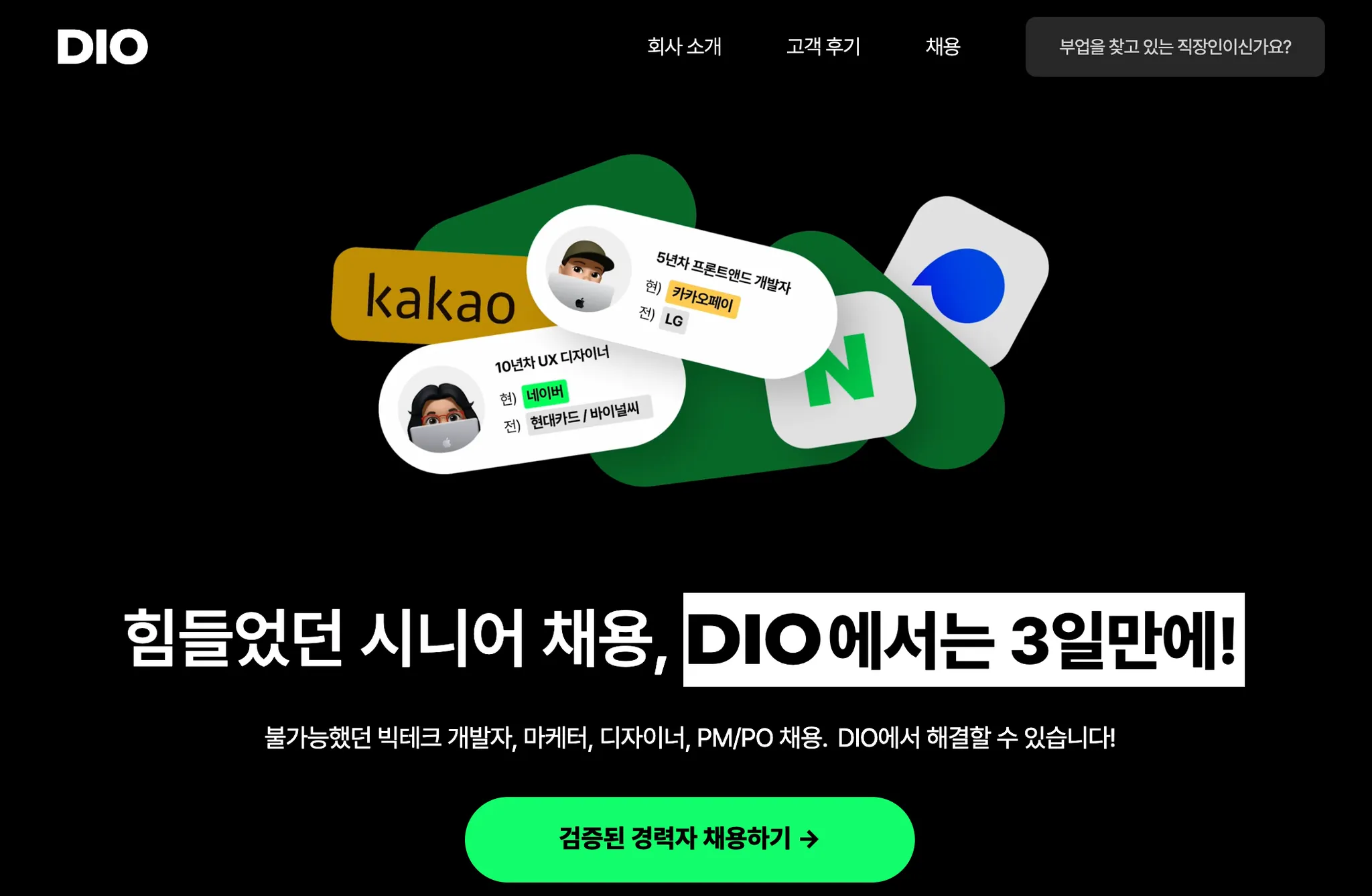 기존 ‘정규직 채용 플랫폼’ 대비 DIO가 더 나은 점은 무엇인가요?