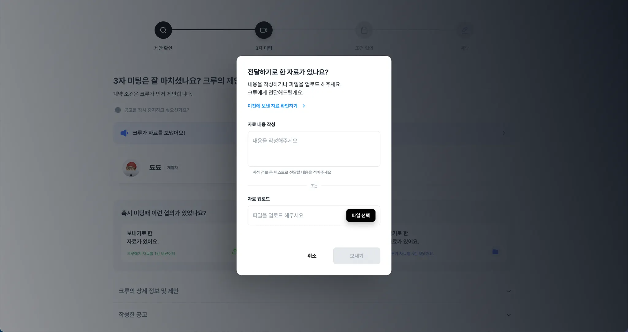 계약을 결정하기 전, 크루와 자료를 주고 받기로 하셨나요?