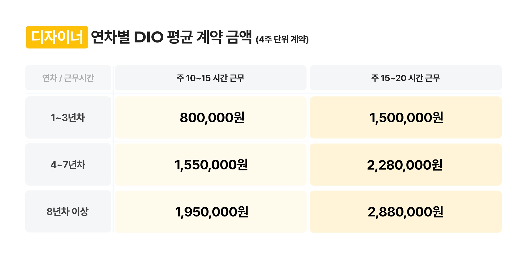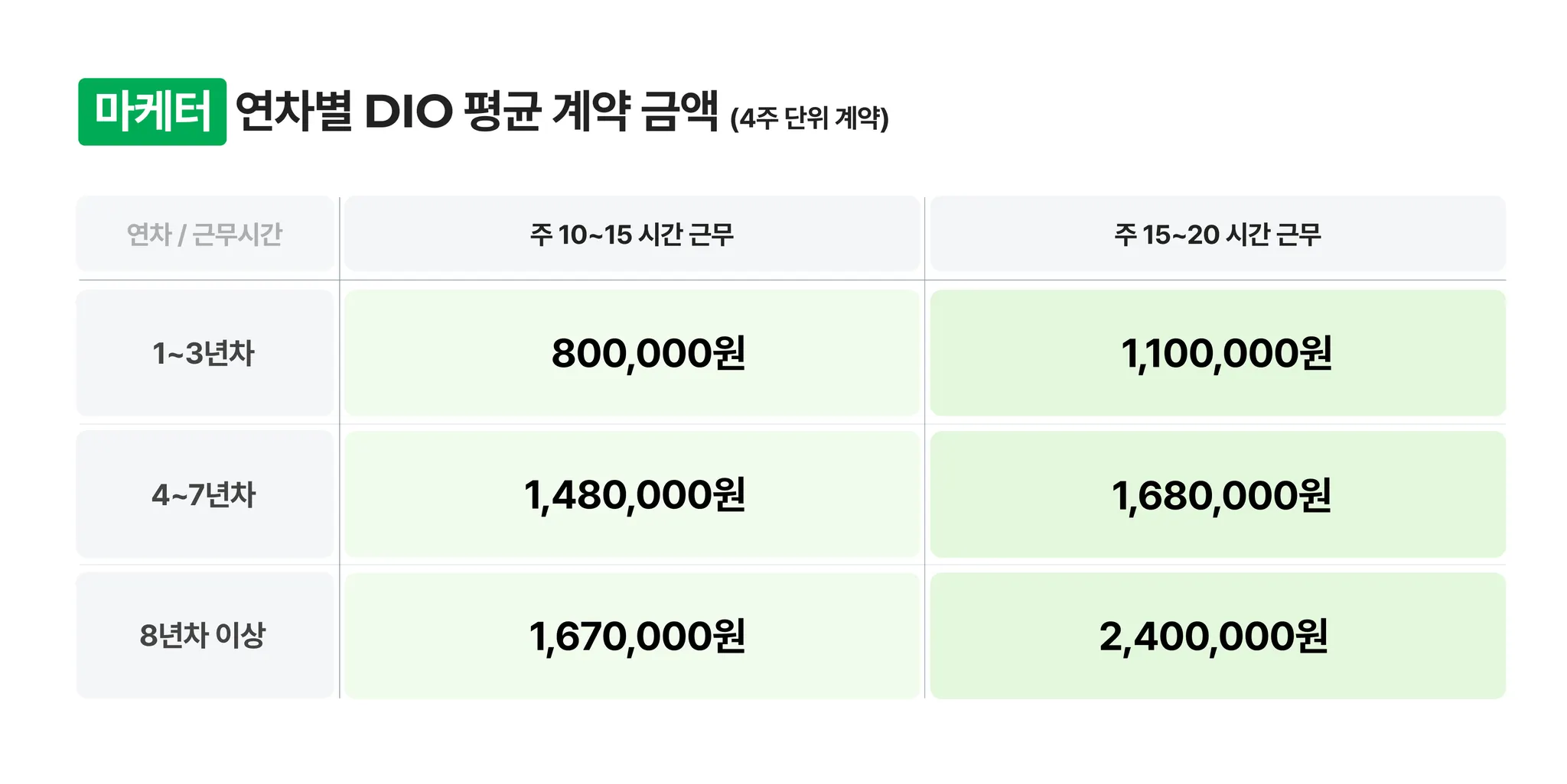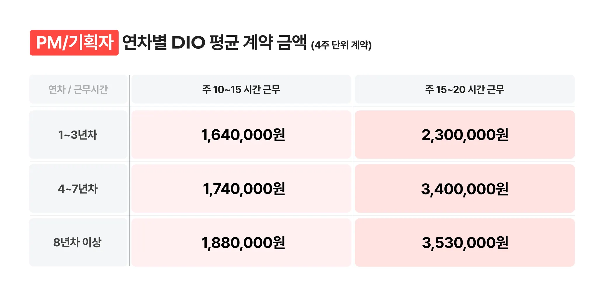 DIO가 추천하는 금액이 아닌, 최근 24개월 평균 계약 금액입니다. 표를 참고하되, 상황에 맞게 변경해서 제안해주세요.